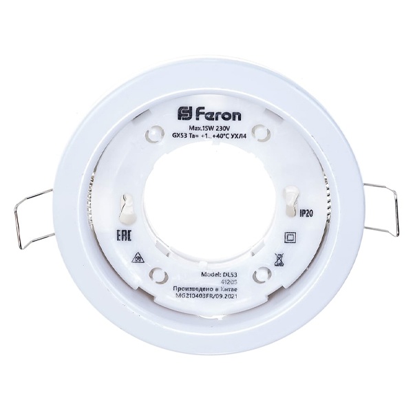 Светильник потолочный встраиваемый (ФВО) FERON DL53, под лампу GX53 GX53, белый, круг, 106*106*20 мм, монтажный диаметр 81мм, корпус металл, неповоротный