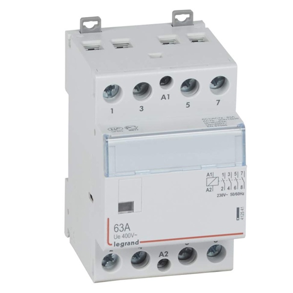 Коммутационный прибор серии CX3 от известного производителя Legrand представляет собой модульный контактор с напряжением на катушке управления 230 Вольт. Управление в нем осуществляется в дистанционном режиме. Это электромагнитное устройство, которое состоит из дугогасительной камеры и контактной системы. Оно обладает 4 контактами замыкающего типа. Аппарат выполняет свои функции в цепи переменного тока. Он рассчитан на номинальный ток нагрузки не более 63 Ампера при напряжении в электроцепи 400 Вольт. Контактор с шириной 3 модуля, соответствующей 53,4 мм, имеет 4 полюса. Установка прибора осуществляется на монтажную рейку EN 60.715 или DIN-рейку шириной 35 мм. Корпус устройства выполнен из термостойкого и ударопрочного пластика – полиамида. Передняя панель обладает степенью защиты от прикосновения IP3XD, степень защиты от ударов IK04. Силовое реле широко используется для включения электрообогревательных приборов, водонагревателей или уличного освещения, управления транспортными линиями и запуска мощных электродвигателей и силового оборудования. Оно обладает эргономичным дизайном, легким монтажом, простым управлением и высоким уровнем безопасности во время эксплуатации.