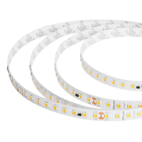 Универсальная 24 вольтовая LED лента Ферон LS520 теплого белого света мощностью 9,6 Вт/м в катушках по 20 метров. 41276