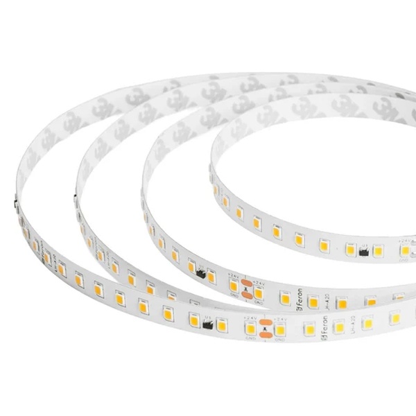 Лента светодиодная 24V FERON LS520, 120*SMD2835, 9,6W/m, IP20, 6000К (холодный белый), Кратность резки мм 100мм, 20000*10*1.22мм