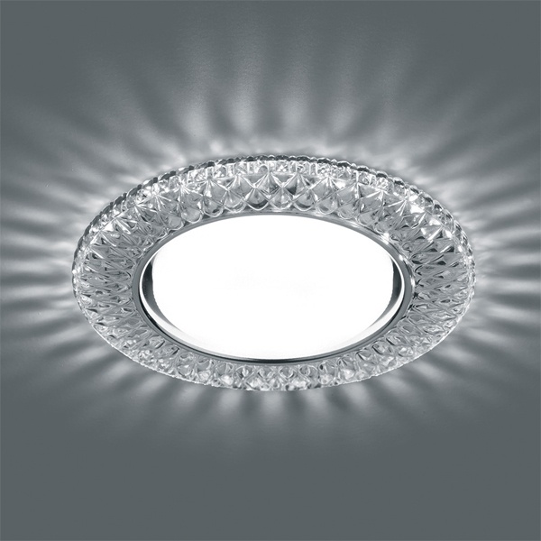 Встраваемый круглый светильник Ферон CD4043 с подсветкой белого света, с цоколем GX53, цвет хром, прозрачные кристаллы 41305