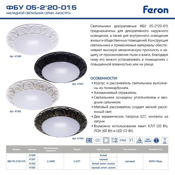 Технические характеристики| Бренд | Feron |