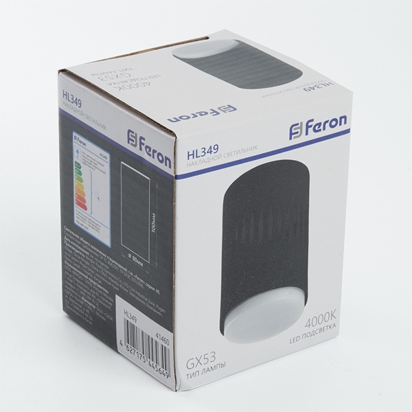 Светильник накладной под лампу, (ИВО) FERON HL349, GX53 12W, (4000К), 230V, IP20, цвет черный, корпус металл, пластик, 80*80*100