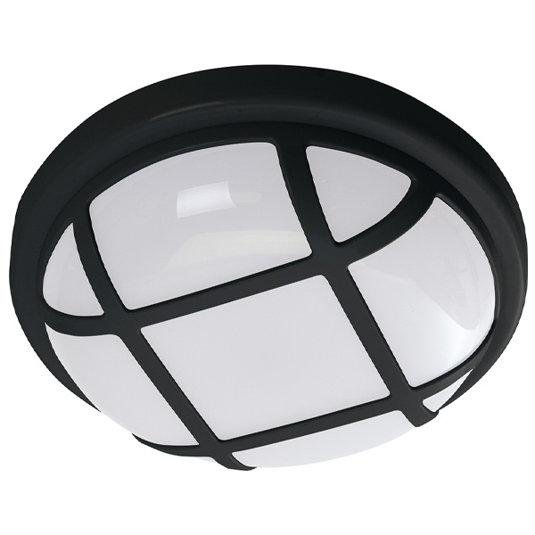 Пылевлагозащищенный пластиковый накладной черный LED светильник Ферон круглый с декоративной решеткой, мощностью 15 Ватт 41464