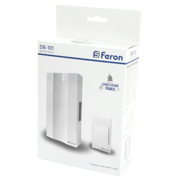 Классический дверной звонок в современном исполнении Feron Идеальная модель для использования в жилых многоквартирных и частных домах, а также офисных и торговых помещениях для оповещения о посетителях. Благодаря питанию от бытовой электрической сети звонок не требует замены батареек в кнопке и основном блоке. С помощью клейкой ленты на оборотной стороне, кнопка звонка с легкостью устанавливается на любую поверхность. Отсутствие радиочастотных каналов исключает ложные срабатывания звонка.