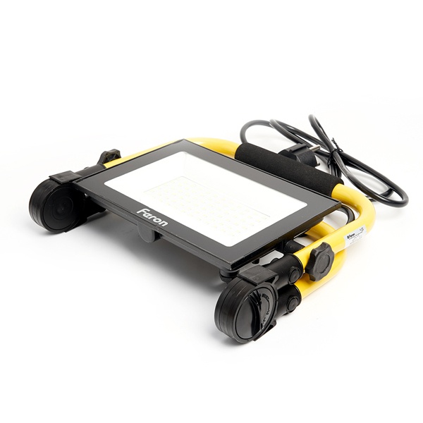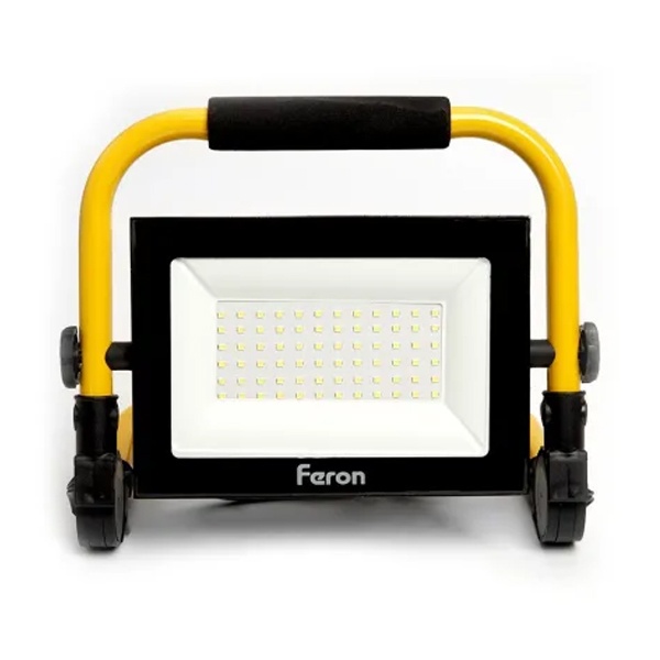 Прожектор светодиодный переносной с ручкой, (ДО) FERON LL-515, 70W, 6400К (холодный белый), 220-240V/50Гц, 6300Lm, IP65, угол рассеивания 120,*SMD2835, раб.t -40C - +40C, цвет черный-желтый, корпус алюминий литой под давлением + стекло, 255*57*275 мм