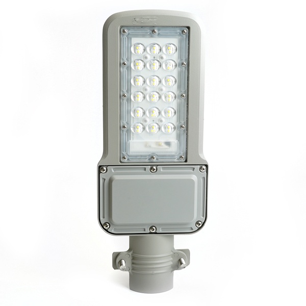Уличный пылевлагозащищеный консольный LED светильник Ферон модели SP3040 мощностью 30 Ватт в сером корпусе, с дневный светом. 41547
