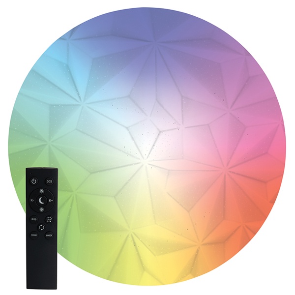 Классический белый круглый потолочный LED светильник Ферон диммируемый с изменением цветовой температуры и RGB подсветкой, мощностью 90 Вт, матовый рассеиватель, пульт дистанционного управления в комплекте. 41747