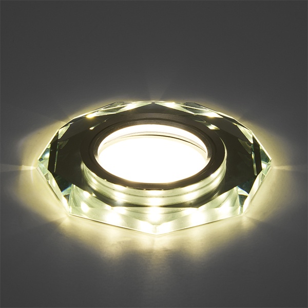 Восьмигранный, встраиваемый, точечный светильник с LED подсветкой Ферон CD8120 с цоколем G5.3 под две лампы MR16 мощностью 50 Ватт, цвет белый 41909