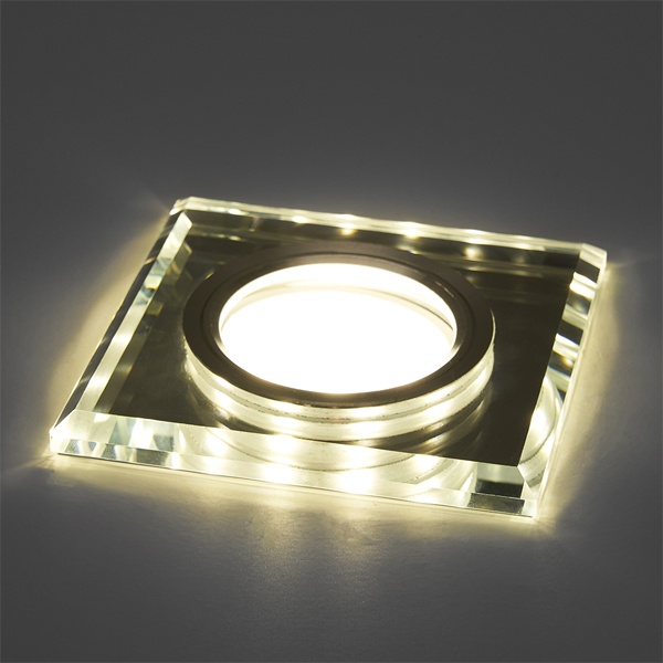 Квадратный встраиваемый точечный светильник с LED подсветкой Ферон CD8120 с цоколем G5.3 под две лампы MR16 мощностью 50 Ватт, цвет белый 41910