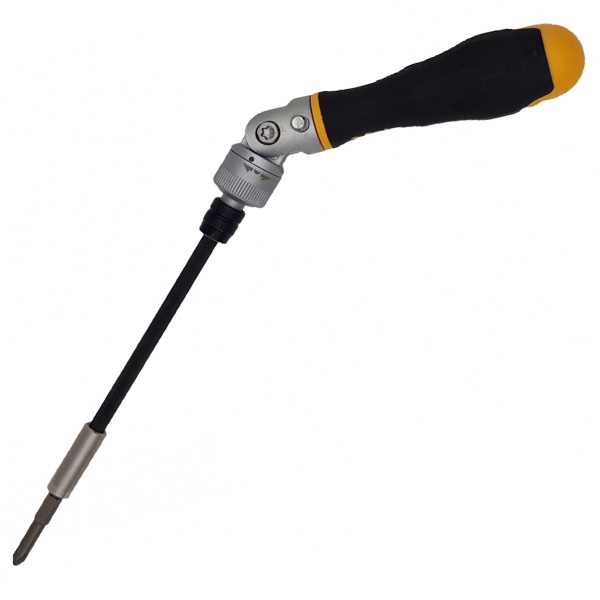 - Ускоряет работу с крепежом за счет храпового механизма: вращение выполняется короткими движениями без постоянного переустановления.