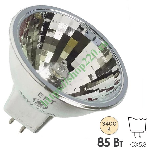 Данная лампа от известной торговой компании General Electric относится к серии низковольтных галогенных источников света специального назначения. Она представляет собой компактную модель с отражателем MR16 и подходит для широкой области применения: медицинской сферы, проекторов, промышленных приборов, научного оборудования, а также в качестве студийного источника с целью создания световых эффектов на сцене. Галогенная лампа обладает мощностью 85 Ватт и рассчитана на сетевое напряжение 13.8 Вольт. Она имеет основание с цоколем GX5.3 и характеризуется надежностью, высокой светоотдачей и отличной цветопередачей на протяжении всего срока службы, который составляет 1000 часов.