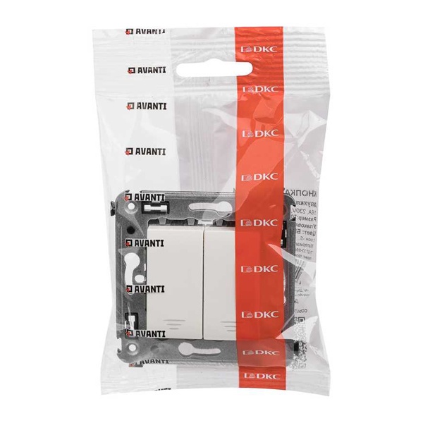 Двухклавишный выключатель без фиксации(кнопка) цвета белое облако, скрытой установки, ДКС Аванти. 4400154