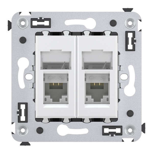 Компьютерная розетка двойная используется для подключения компьютерной техники и соединения с патч-панелью. Компьютерная розетка предназначена для скрытого монтажа в стену. Розетка RJ-45 категории 5e – это наиболее популярная на сегодняшний день модель. Она позволяет организовать сеть с частотой 125 МГц и скоростью до 1000 Мбит/с. Материал – металл, термопласт. Пластиковые части изделия выполнены в цвете "Белое облако" – самом универсальном оттенке из цветовой гаммы ЭУИ "Avanti". Спокойный и сдержанный, в интерьере этот оттенок создает атмосферу покоя и уюта.
