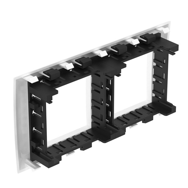 ЭУИ "Avanti" – это образец сочетания передового дизайна и высокой надежности. Их можно применять как на промышленных объектах, так и в жилых помещениях с дизайнерским ремонтом. Эта серия была вдохновлена традициями русского авангарда начала XX века. В состав системы входят: каркасы, механизмы и рамки. Механизмы устанавливаются в кабель-каналы, лючки или башенки с помощью каркасов и рамок. Особая конструкция аксессуров позволяет повысить степень пыле- и влагозащиты до IP 55, что дает возможно размещать электроустановочные изделия даже в помещениях с повышенным уровнем влажности и загрязненности, не опасаясь попадания влаги или мусора во внутреннюю часть механизма. При монтаже механизм устанавливается в рамку, а та, в свою очередь, фиксируется на каркасе и устанавливается в нужном месте - на стене, в лючке, башенке или кабель-канале. Рамка изготовлена из АБС-пластика и имеет цвет "Белое облако". Предназначена для установки четырех модулей ЭУИ.