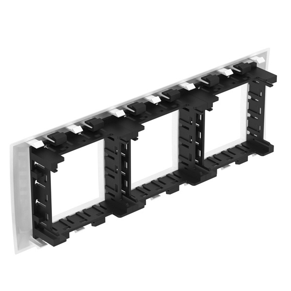 ЭУИ "Avanti" – это образец сочетания передового дизайна и высокой надежности. Их можно применять как на промышленных объектах, так и в жилых помещениях с дизайнерским ремонтом. Эта серия была вдохновлена традициями русского авангарда начала XX века. В состав системы входят: каркасы, механизмы и рамки. Механизмы устанавливаются в кабель-каналы, лючки или башенки с помощью каркасов и рамок. Особая конструкция аксессуров позволяет повысить степень пыле- и влагозащиты до IP 55, что дает возможно размещать электроустановочные изделия даже в помещениях с повышенным уровнем влажности и загрязненности, не опасаясь попадания влаги или мусора во внутреннюю часть механизма. При монтаже механизм устанавливается в рамку, а та, в свою очередь, фиксируется на каркасе и устанавливается в нужном месте - на стене, в лючке, башенке или кабель-канале. Рамка изготовлена из АБС-пластика и имеет цвет "Белое облако". Предназначена для установки шести модулей ЭУИ.