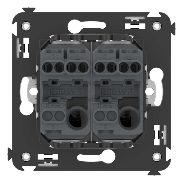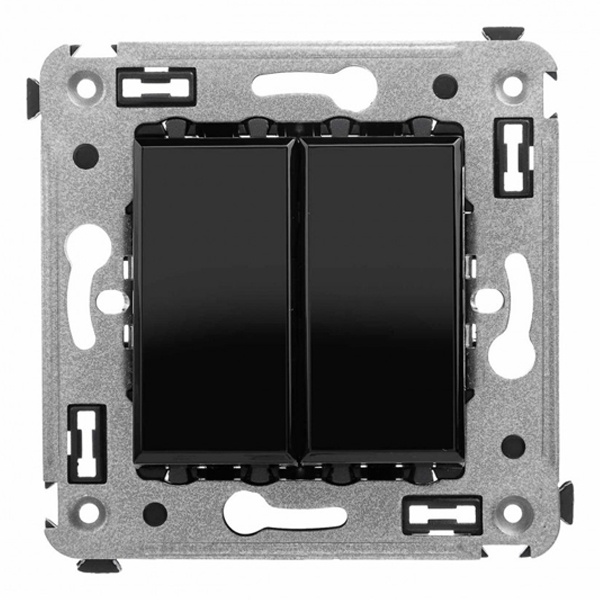 Кнопка двухклавишная. Назначение: для монтажа в подрозеточные коробки глубиной не менее 45 мм . Используется в качестве кратковременного включения источника питания энергией. Фиксация в подрозеточные коробки при помощи каркаса с лапками и саморезов.