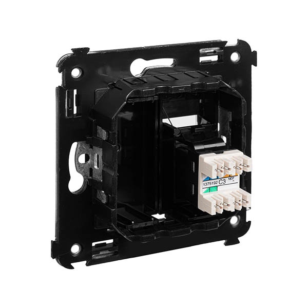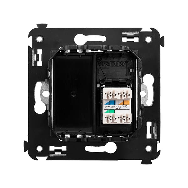 Розетка телефонная ДКС Rjx12 для скрытой установки, цвета черный квадрат. 4402313