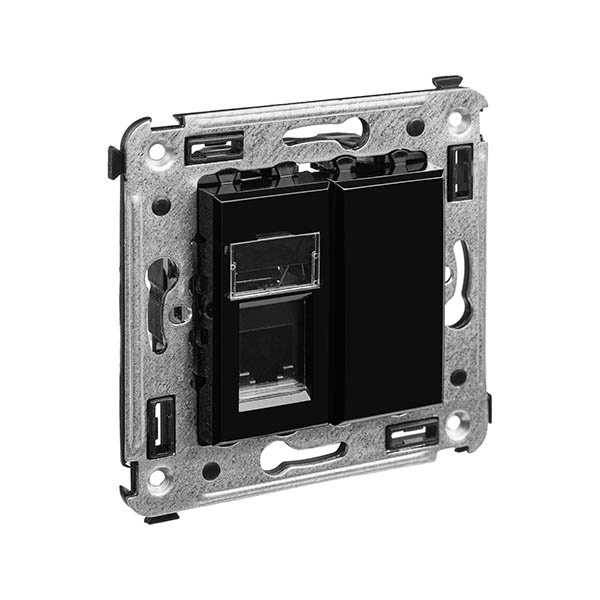 Телефонная розетка RJ-12 от ДКС устанавливается в стену (скрыто) и применяется для связи телефонных линий или же коммутации телефонных аппаратов с розеткой. Материал – металл, термопласт. Пластиковые части имеют нежный оттенок "Черный квадрат" – изысканный, таинственный, мистический черный, придающий особый шарм лаконичным формам рамок для ЭУИ "Avanti".