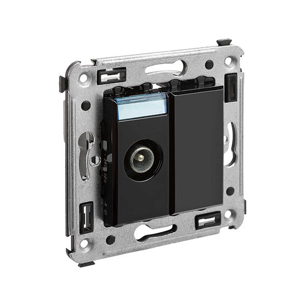 Проходные телевизионные розетки предназначены для скрытой установки в стенах и применяются для подключения телевизионного кабеля. TV-розетки производства ДКС рассчитаны на частоту до 2400 Гц. Материал – металл, пластик. Пластиковые части устройства имеют цвет "Черный квадрат" – таинственный, темный и глубокий оттенок, несущий отголоски традиций русского авангарда.