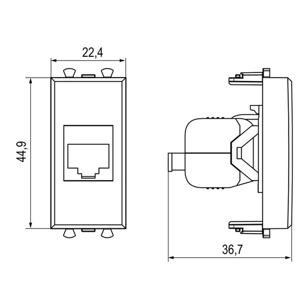 Компьютерная розетка RJ-45 категория 6 предназначена для подключения сетевого оборудования и организации структурированной кабельной системы. Используется для соединения с патч-панелью и установки в различные элементы организации рабочих мест, такие как кабель-каналы, напольные и настольные лючки, башенки и колонны.