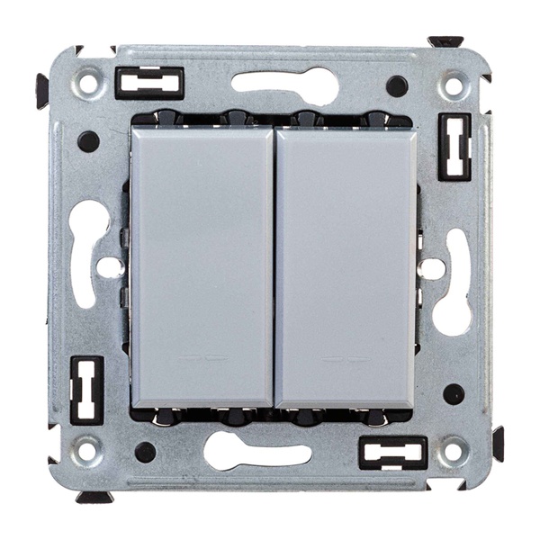Материал ЭУИ: металл, термопласт. Пластиковые части электро установочного изделия имеют оттенок "Закаленная сталь" – светлый, спокойный оттенок, оттеняющий более насыщенные цвета, сочетающийся с интерьерами в любом стиле и любой цветовой гамме.