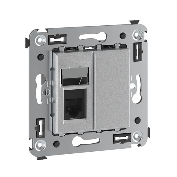 Телефонная розетка RJ-12 от ДКС устанавливается в стену (скрыто) и применяется для коммутации линий телефонной связи в патч-панелях или для связи телефонных аппаратов с розеткой. Материал – металл, термопласт. Пластиковые части имеют цвет оттенок "Закаленная сталь" – изысканный серебристый оттенок, имеющий приглушенный металлический блеск. Он сочетается с интерьерами, выдержанными в холодной цветовой гамме и отлично вписывается в стилистику дизайна "high-tech".