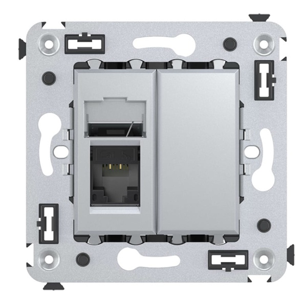 Компьютерная розетка одинарная используется для подключения телефонных/компьютерных кабелей. Компьютерная розетка предназначена для скрытого монтажа в стену. Розетка RJ-45 категории 5e – это наиболее популярная на сегодняшний день модель, обеспечивающая высокую скорость передачи данных (до 1000 Мбит/с). Материал – металл, термопласт. Пластиковые части изделия выполнены в цвете "Закаленная сталь" – самом универсальном оттенке из цветовой гаммы ЭУИ "Avanti". Спокойный и сдержанный, в интерьере этот оттенок создает атмосферу покоя и уюта.