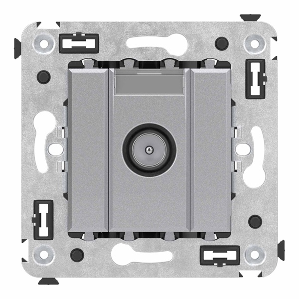 Оконечные телевизионные розетки предназначены для скрытой установки в стенах и применяются для подключения телевизионного кабеля. TV-розетки производства ДКС рассчитаны на частоту до 2400 Гц. Материал – металл, пластик. Пластиковые части имеют цвет "Закаленная сталь" – это универсальный, легкий и воздушный оттенок, смягчающий цветовые сочетания и несущий чувство покоя. Количество модулей в изделии – 2.