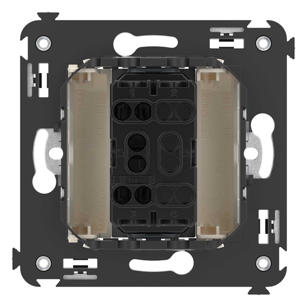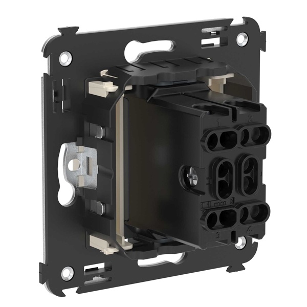 • Механизм устанавливается в подрозеточные коробки глубиной не менее 45 мм (код 59301) при помощи каркаса с лапками (код 4400802) и саморезов.
