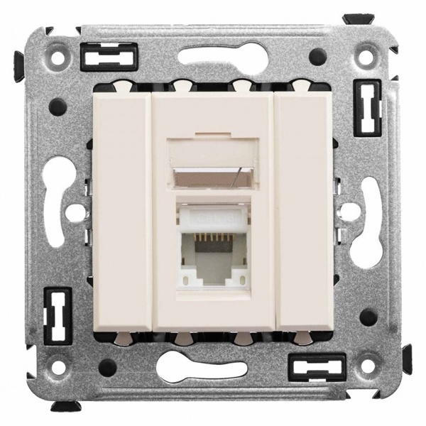 Компьютерная розетка двойная используется для подключения компьютерной техники и соединения с патч-панелью. Компьютерная розетка предназначена для скрытого монтажа в стену. Розетка RJ-45 категории 6 может использоваться для организации сетей с частотой до 250 МГц и передавать данные на большие расстояния. Кабель этой категории имеет повышенную защиту от помех. Материал розетки – металл, термопласт. Пластиковые части изделия выполнены в цвете "Ванильная дымка". Это теплый, уютный оттенок бежевого. Для декоративного оформления может быть подобрана рамка "в цвет" или же контрастного оттенка. Лучше всего изделие сочетается со светлыми и пастельными оттенками.