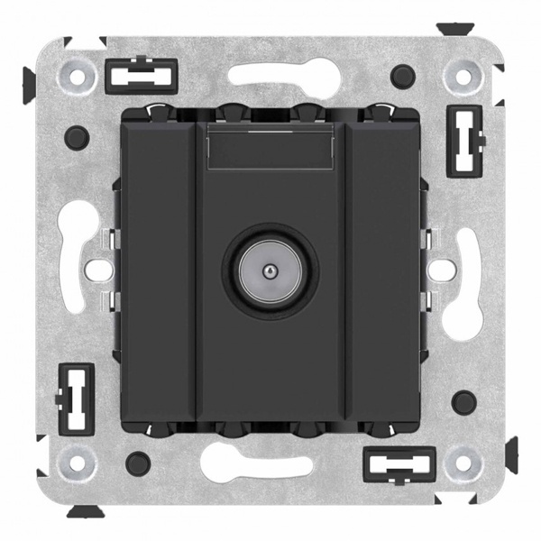 Оконечные телевизионные розетки предназначены для скрытой установки в стенах и применяются для подключения телевизионного кабеля. TV-розетки производства ДКС рассчитаны на частоту до 2400 Гц. Материал – металл, пластик. Пластиковые части устройства имеют цвет "Черный матовый" – таинственный, темный и глубокий оттенок, несущий отголоски традиций русского авангарда.