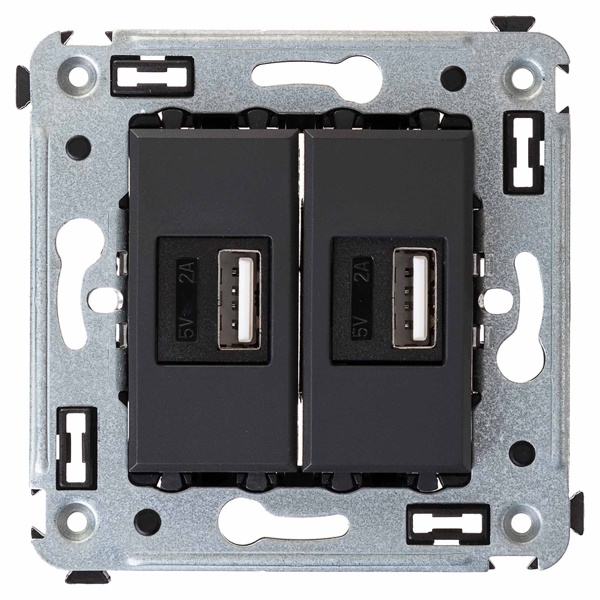 Зарядное устройство ДКС на 2 USB выхода для скрытой установки, цвета черный матовый. 4412543