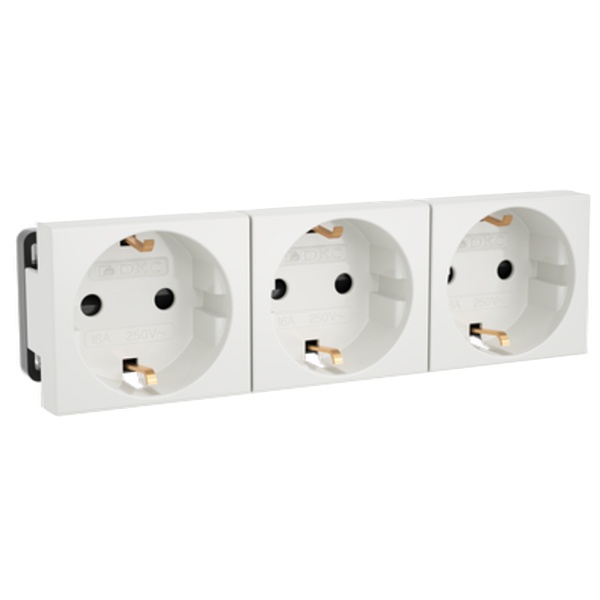 Электрические розетки штекерные с заземлением и защитными шторками, тройной моноблок. Предназначены для безопасного и удобного подключения офисной оргтехники, бытовых приборов, инструментов и другого электрооборудования. Конструкция блока позволяет значительно ускорить процесс монтажа — экономия времени при подключении кабеля достигает 60 %.