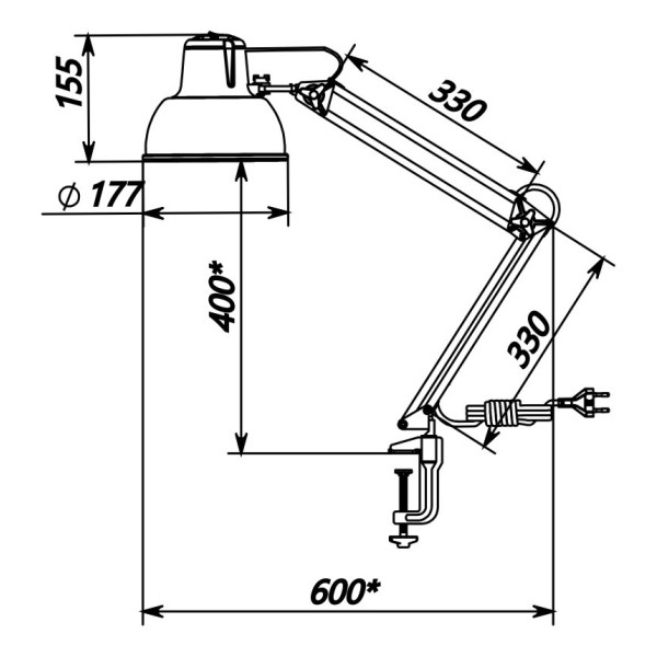 Крепления к торцам столешниц, полок стеллажей и прочим аналогичным поверхностям осуществляется с помощью струбцины, входящей в комплект поставки. Лампа не входит в комплект поставки.