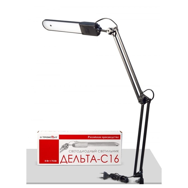 Энергосберегающий светильник «Дельта С16» МС на светодиодах на металлической струбцине мощностью 8 Ватт, нейтральный белый свет, цвет черный 4607053882360