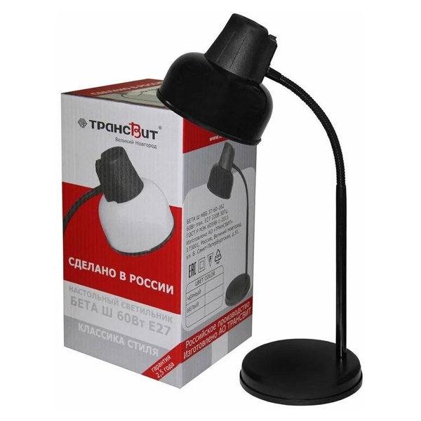 Настольный светильник Бета-Ш под лампу мощностью 60 Ватт с цоколем E27, на подставке, гибкая стойка 450 мм, черного цвета 4607053882599