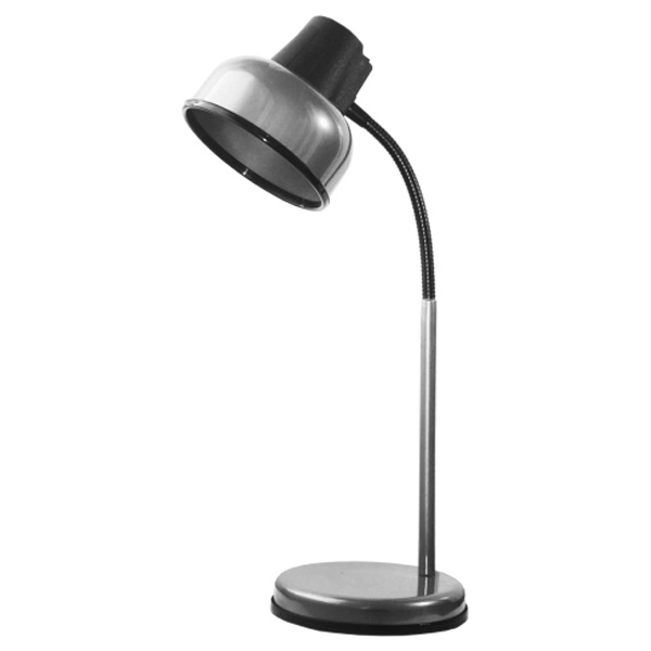 Настольный светильник Бета-Ш под лампу мощностью 60 Ватт с цоколем E27, на подставке, гибкая стойка 450 мм, серебро цвета 4607053882605
