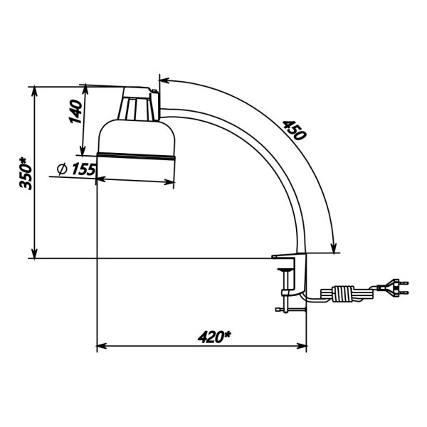 - Высота светильника при стандартном использовании: 450 мм