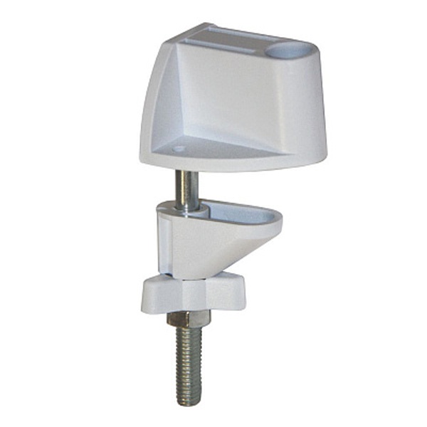 Крепления к торцам столешниц, полок стеллажей и прочим аналогичным поверхностям осуществляется с помощью струбцины, входящей в комплект поставки.