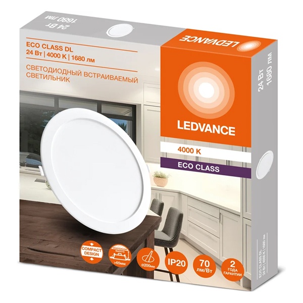 • Светильник светодиодный Ledvance Downlight ECO 24W/840 4000K WT IP20 1680Lm D225/d200x28mm