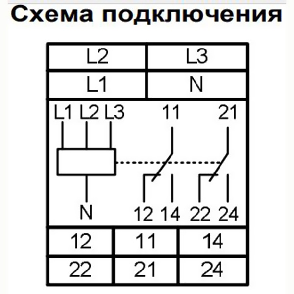 - Контроль пропадания всех трёх фаз в четырёхпроводных сетях с нейтралью