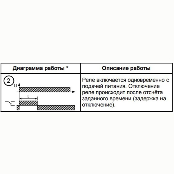 Технические характеристики| Тип реле | Задержка на выключение |
