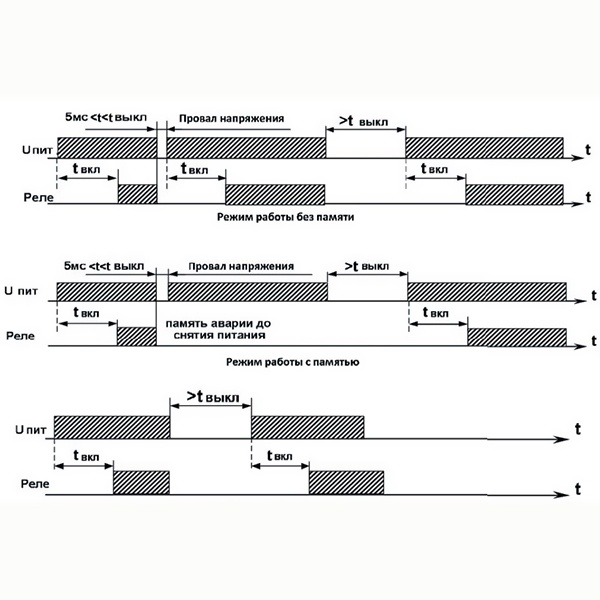 - Режим памяти аварий питания длительностью от 5 мс до 3 секунд;