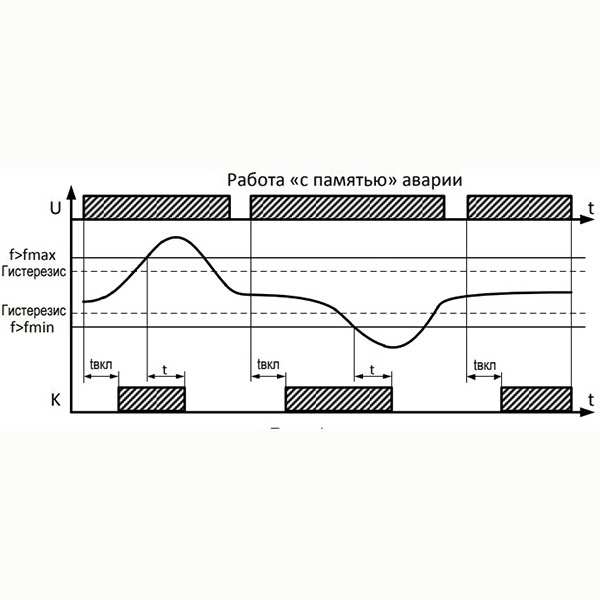 Реле контроля частоты используется для контроля частоты переменного напряжения. Реле обеспечивает контроль частоты 50 или 60 Гц. Реле РКЧ-М01 контролирует частоту напряжения питания. Реле может использоваться для контроля частоты в однофазных и многофазных сетях с фиксированной задержкой срабатывания и регулиремыми порогами отключения исполнительного встроеннго реле. Реле допускает режим работы "без памяти" аварии и режим работы с "памятью аварии".