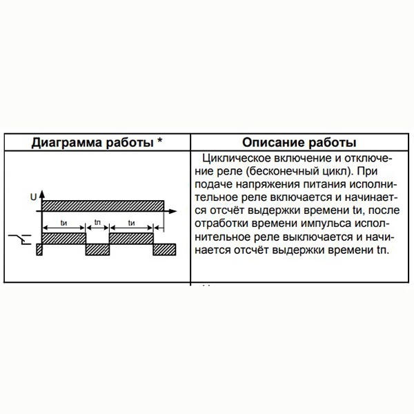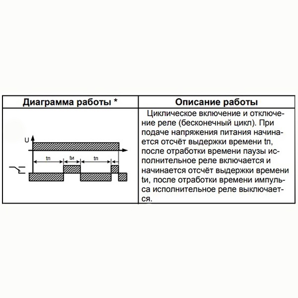 - Циклическое реле времени с раздельной регулировкой времени импульса и паузы