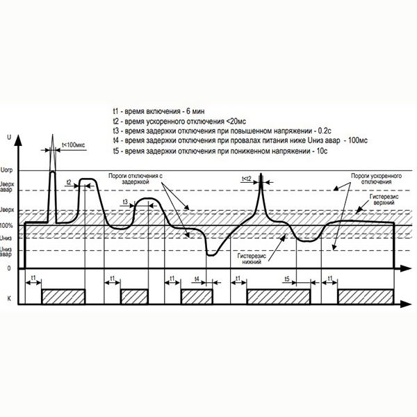 Задержка отключения при снижении напряжения ниже нижнего порога | |