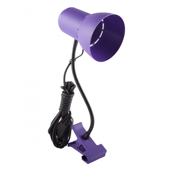 Настольный светильник Надежда-ПШ под лампу мощностью 40 Ватт с цоколем E27, гибкая стойка с клипсой, цвет фиолетовый 4650066340440