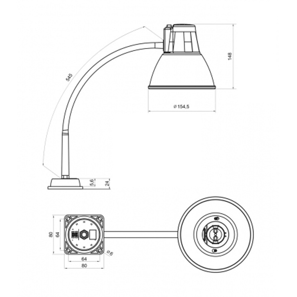 Станочный светильник «Алькор» НКП 03-60-026-03 60 Ватт, без лампы, ЛОН, с цоколем Е27, на флексе 545мм (вид основания - привинчивающая пластина), белый 4650066340525