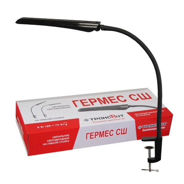 Настольный светодиодный светильник «Гермес СШ» на гибкой стойке, мощностью 8 Ватт, 220 В, цветовая температура 5000 К, сенсорное включение, на металлической струбцине 4650066340747